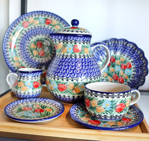 The dishes have been hand-made since 1950 in a traditional way, decorated using the stamping and brushing method using ecologically safe glazes and paints. The products are fired in modern, ceramic kilns. Lead-free glazes are used, which makes it ecological, resistant to abrasion and safe in ovens, dishwashers and microwaves. It can be used to prepare and serve many different dishes, decorating even the most demanding interiors.