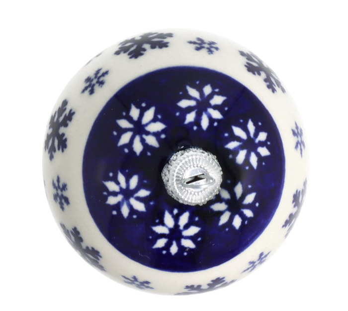 Ceramic Christmas ball, ø 7,20 cm. Charming decoration, beatifully apears on the table among Boleslawiec dishes or on the Christmas tree. Made of natural ceramic clays, hand formed and hand decorated by Bolesławiec artist. Dishwasher and microwave safe.