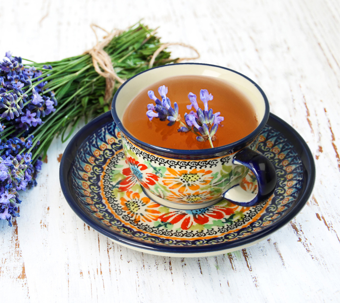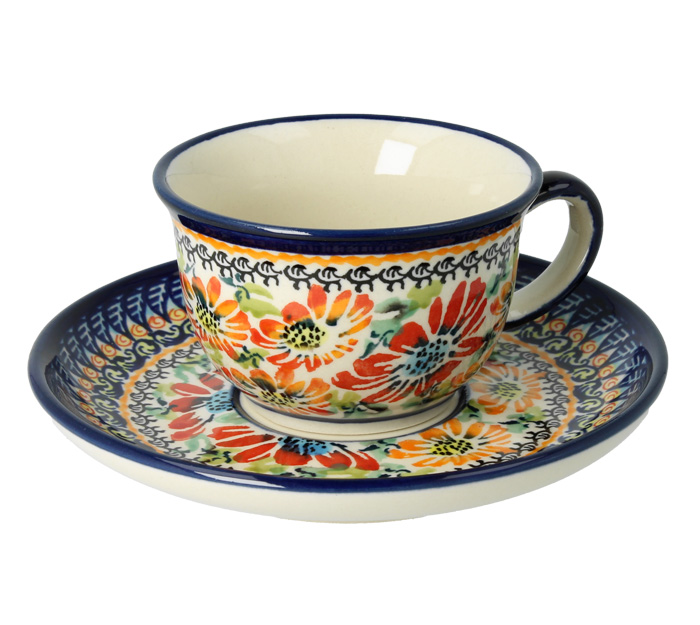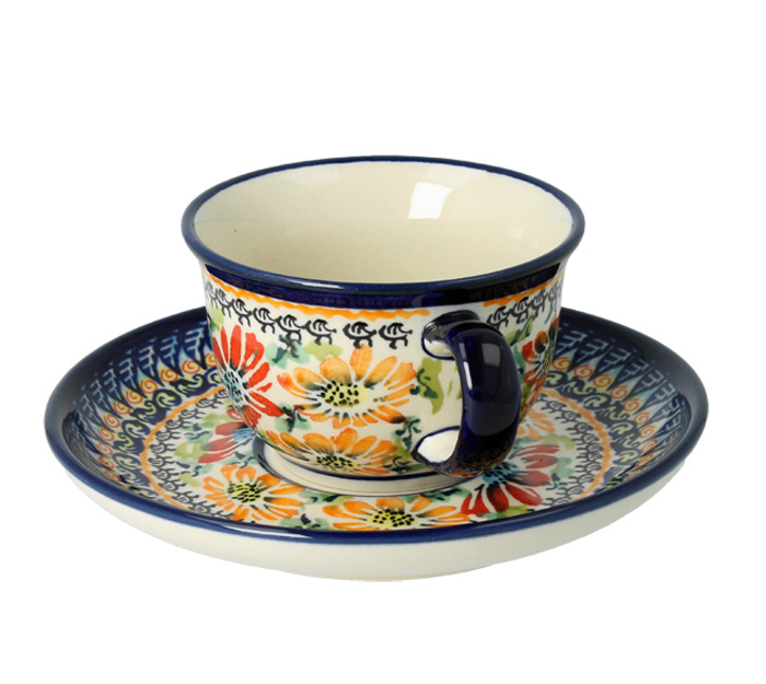 The cup of capacity 0,11l, and matching saucer with a diameter of 11,7 cm. This petit cup is perfect for tea or coffee. You can find it also in coffee sets which are available in our shop E-manufaktura. Cups with saucers are also a perfect idea for a present on every occasion.