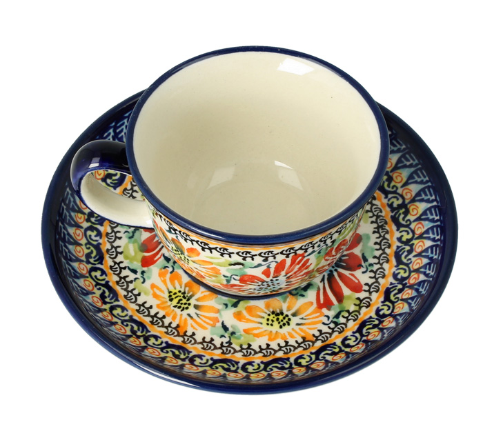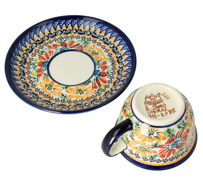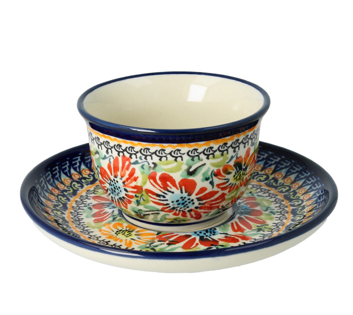 Cup and saucer V 0,11 L ø 14,2 cm GU716DEK321Art Bolesławiec Pottery