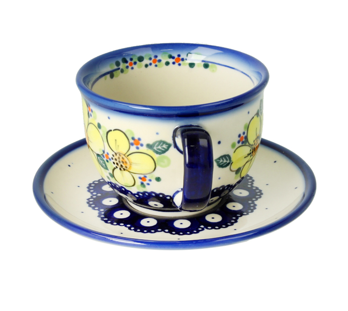 Cup and saucer V 0,2 L Buttercup Bolesławiec Pottery Galia