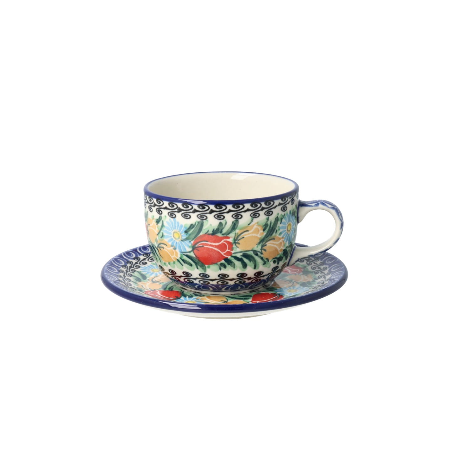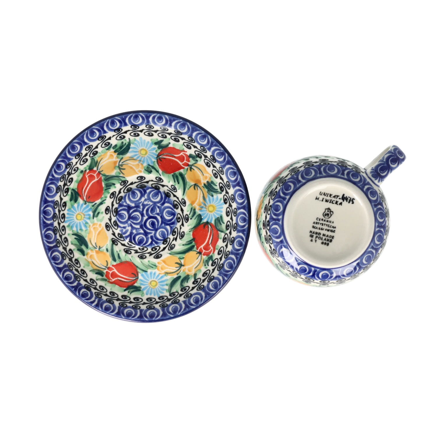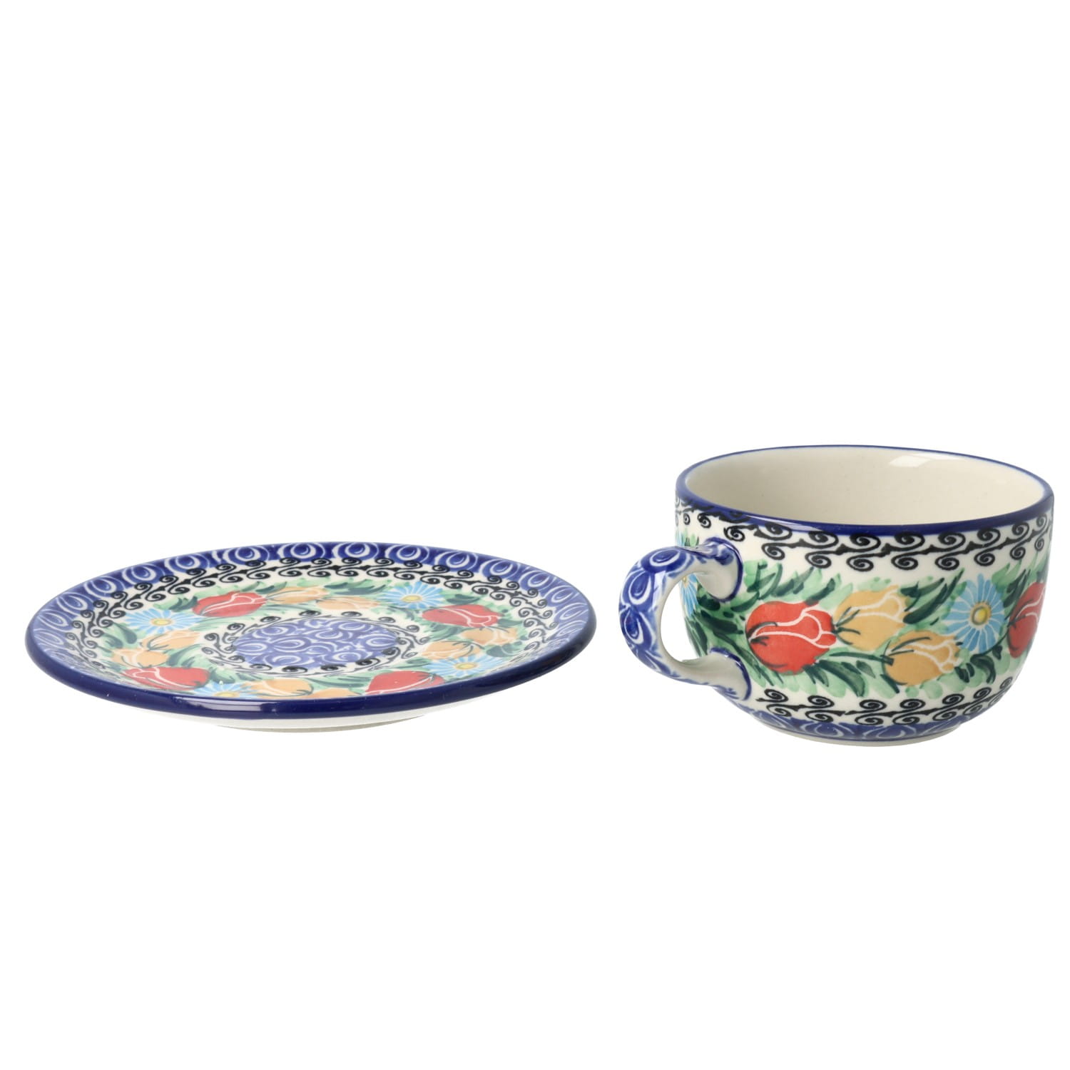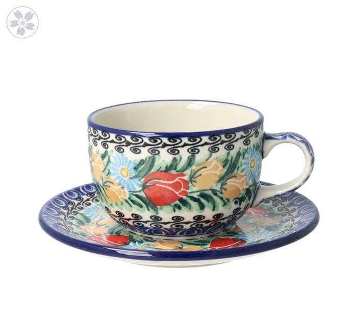Cup 0,24l and saucer 11,7cm. Perfect for tea or coffee. Product made from ceramic clay, hand-made and hand-painted in Zakłady Ceramiczne Bolesławiec.
