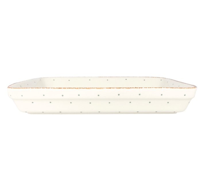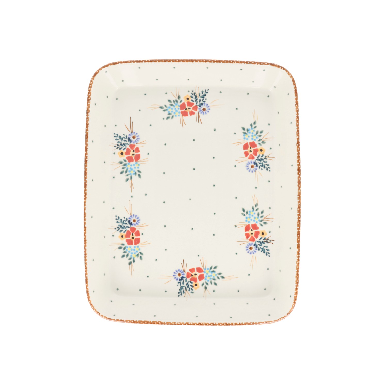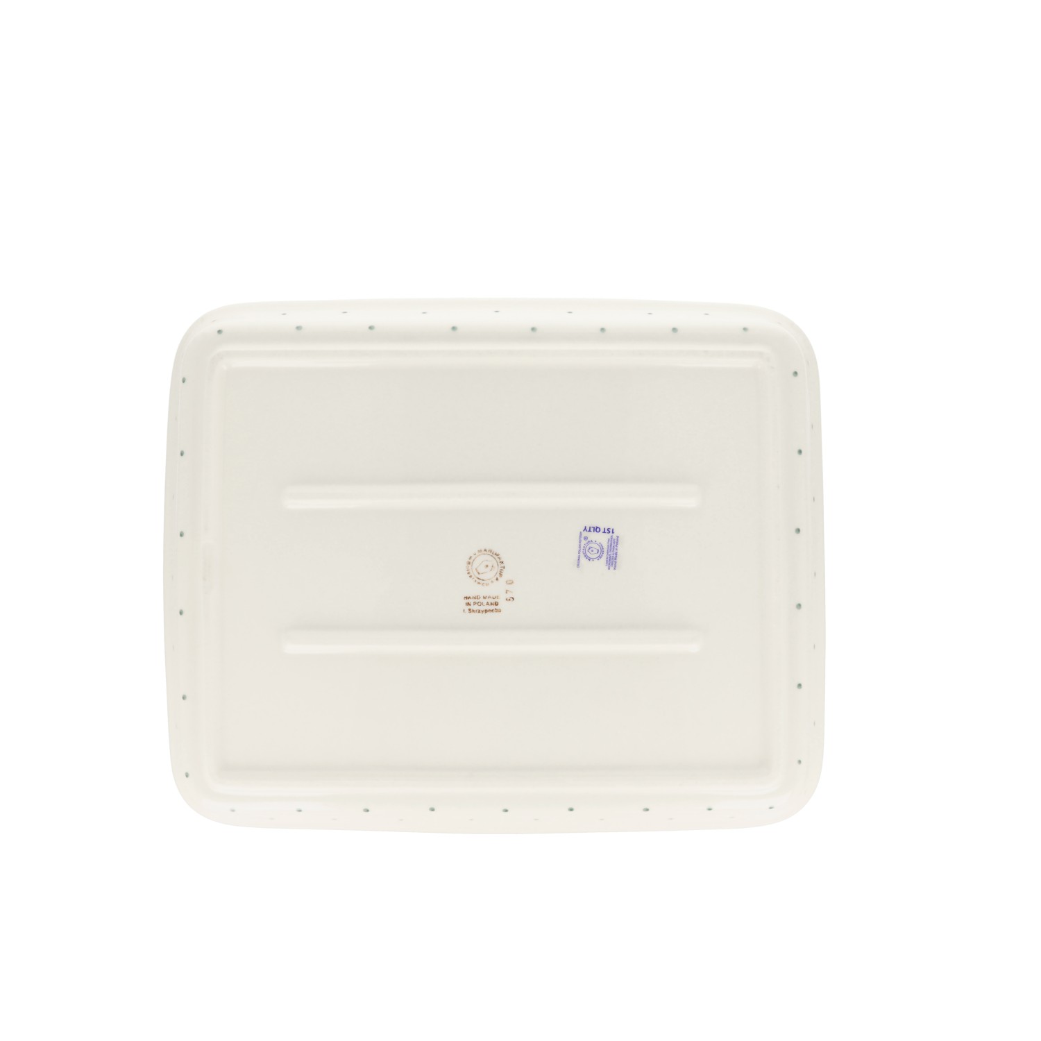 Rectangular dish with grooved bottom. Practical dish suitable for cooking and serving hot food. Made of natural ceramic clays, hand formed and hand decorated by Bolesławiec artist. Dishwasher and microwave safe.