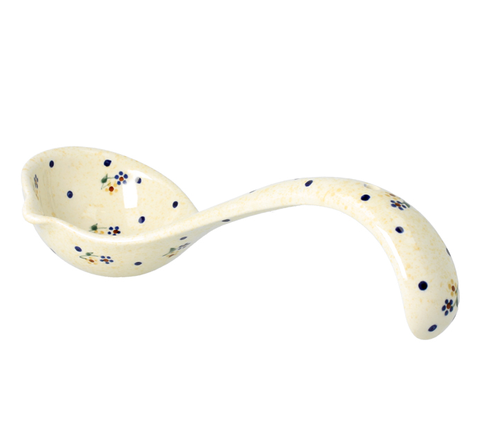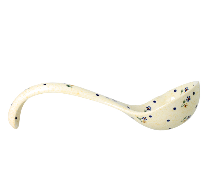 Ceramic ladle, dimensions ø 25,2 x 10,5 cm. Soup ladle with profiled spout. Made of natural ceramic clays, hand formed and hand decorated by Bolesławiec artist. Dishwasher and microwave safe.