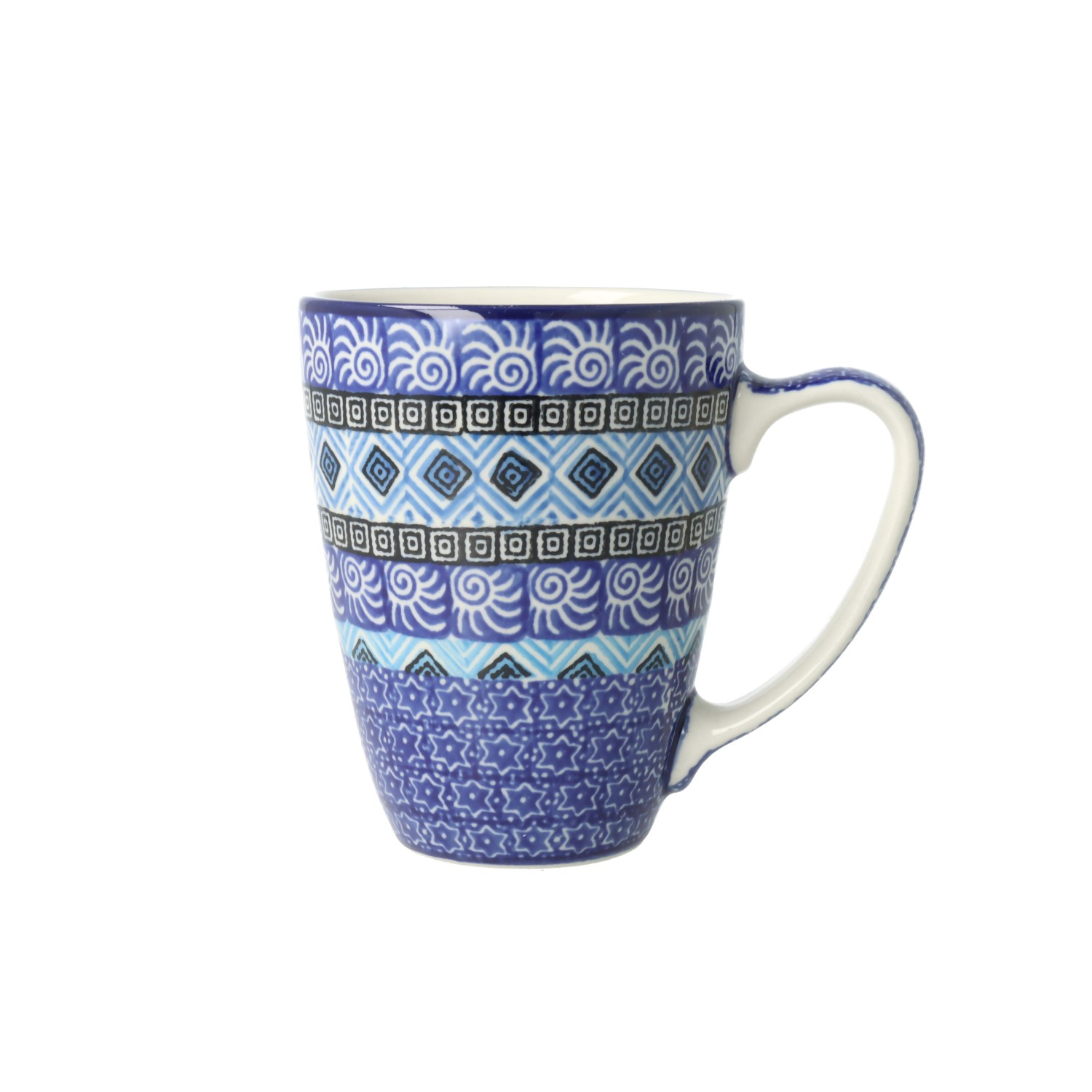 Mug V 0,22 l from classic decoration no. 1208. Product made from ceramic clay, hand-made and hand-painted in Zakłady Ceramiczne Bolesławiec.