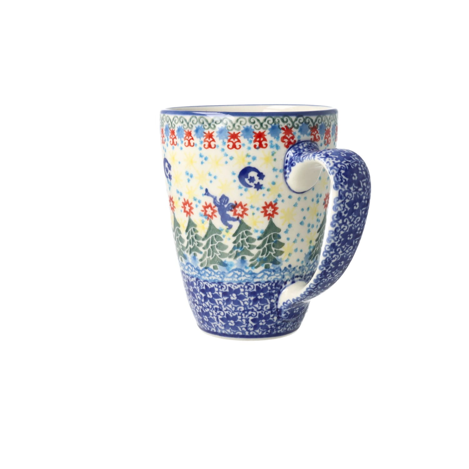 Mug V 0,22 l from classic decoration no. 1208. Product made from ceramic clay, hand-made and hand-painted in Zakłady Ceramiczne Bolesławiec.