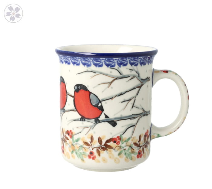 Mug V0,35l from unique decoration no.243A. Product made from ceramic clay, hand-made and hand-painted in Zakłady Ceramiczne Bolesławiec. Mugs from artistic decoration are hand-painted and signed by the artist on the bottom.