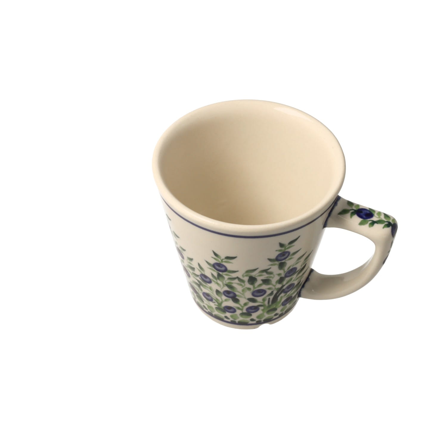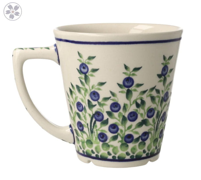 Mug V 0,22 l from classic decoration no. 1208. Product made from ceramic clay, hand-made and hand-painted in Zakłady Ceramiczne Bolesławiec.
