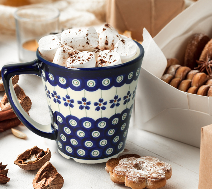 Mug V0,32l from classic decoration no. 1208. Product made from ceramic clay, hand-made and hand-painted in Zakłady Ceramiczne Bolesławiec.