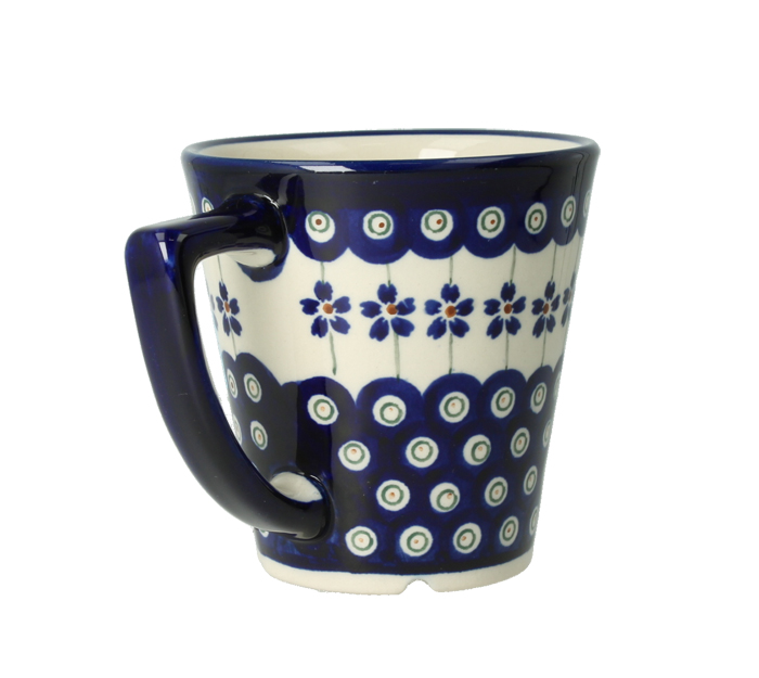 Mug V 0,22 l from classic decoration no. 1208. Product made from ceramic clay, hand-made and hand-painted in Zakłady Ceramiczne Bolesławiec.