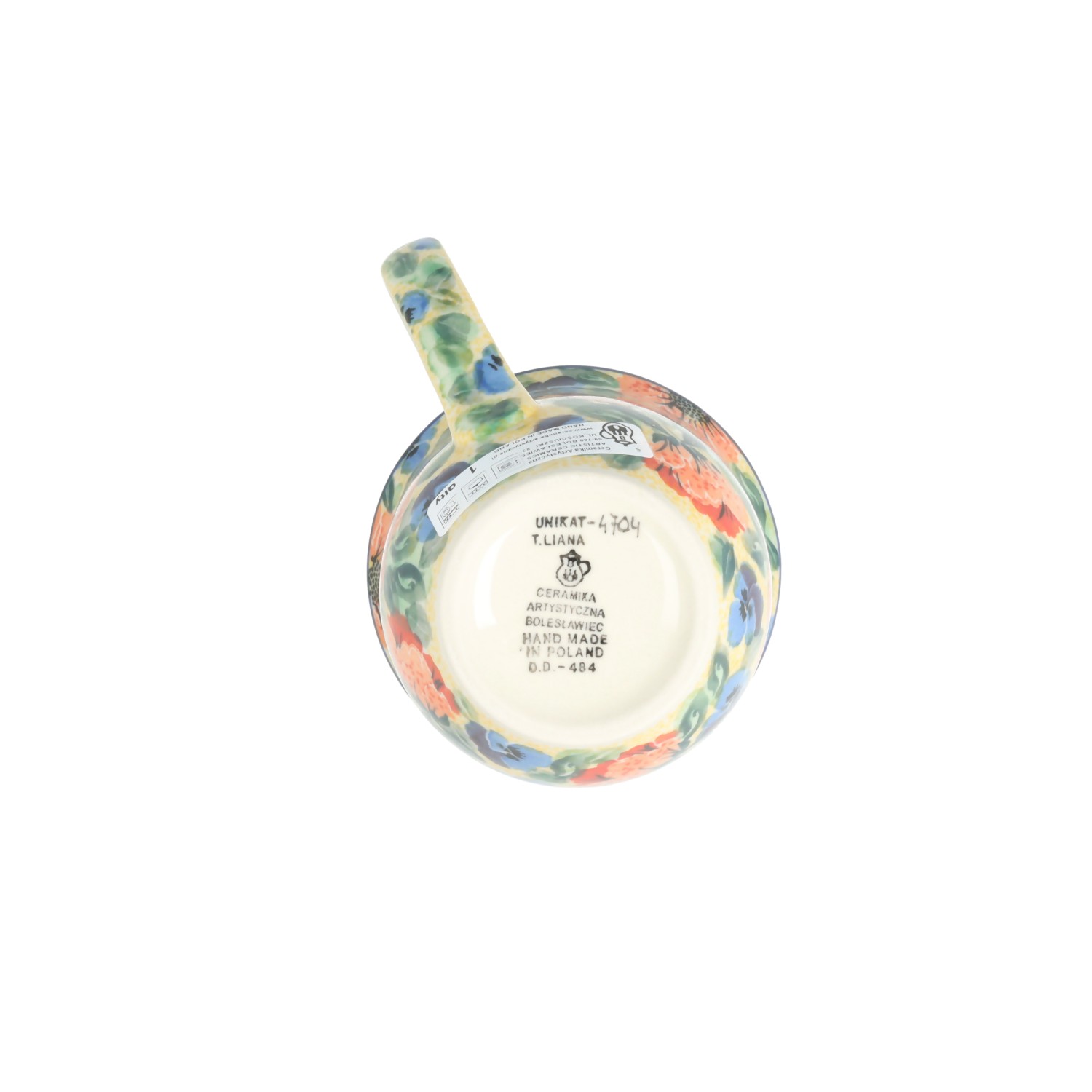 Mug V0,32l from uniqe decoration no.1399A. Product made from ceramic clay, hand-made and hand-painted in Zakłady Ceramiczne Bolesławiec. Mugs from uniqe decoration are hand-painted and signed by the artist on the bottom.