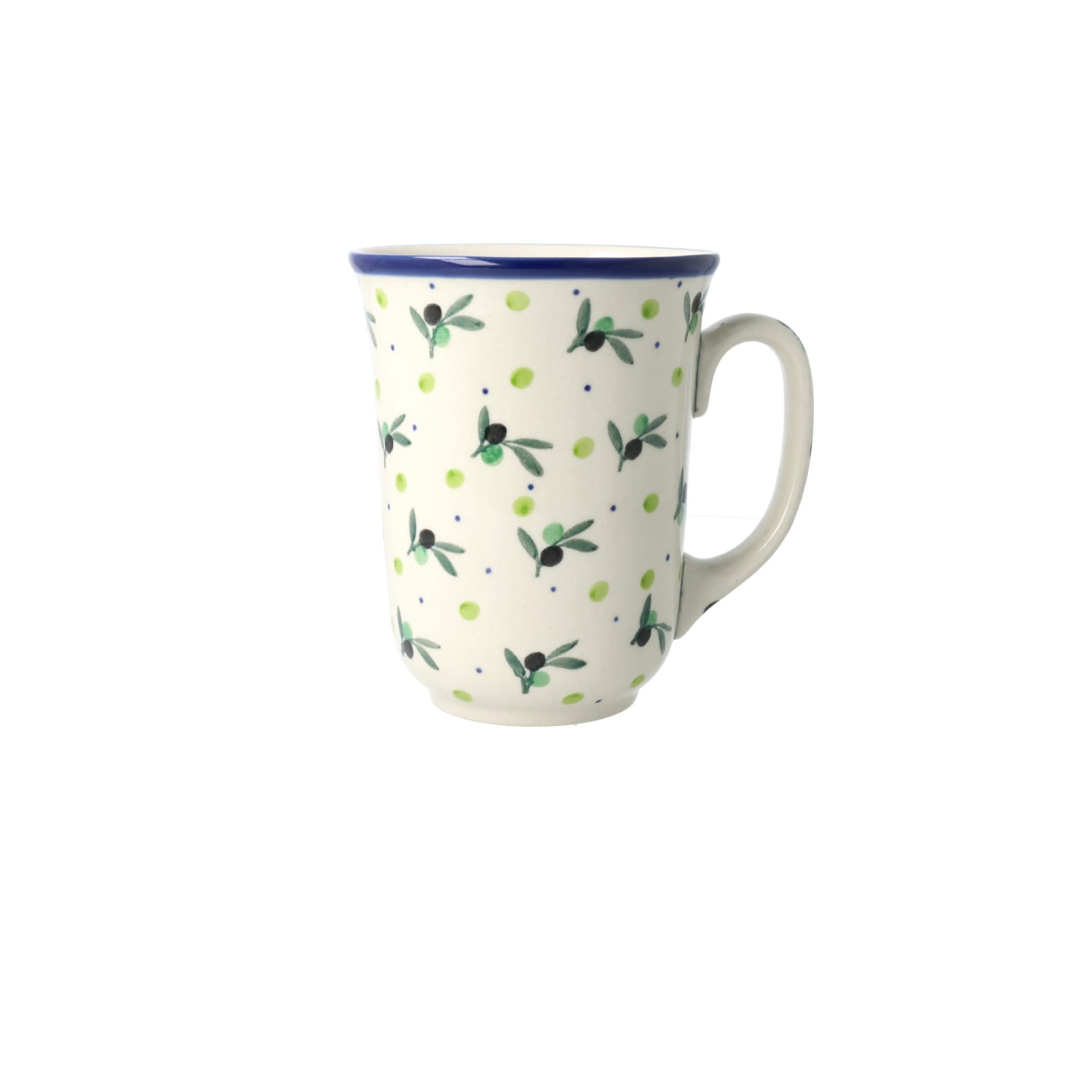 Mug V 0,22 l from classic decoration no. 1208. Product made from ceramic clay, hand-made and hand-painted in Zakłady Ceramiczne Bolesławiec.
