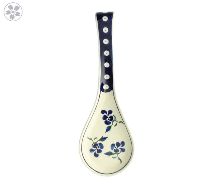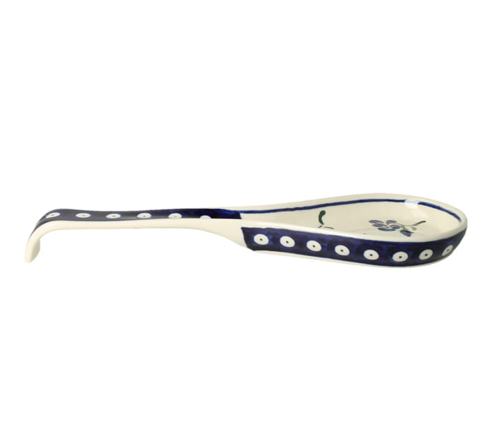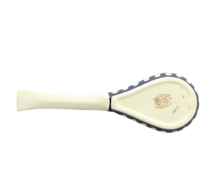 Spoon rest, dimensions ø 25,5 x 8,5 cm. Handy spoon rest enables to put spoon aside while cooking. Protects kitchen table from blots. Made of natural ceramic clays, hand formed and hand decorated by Bolesławiec artist. Dishwasher and microwave safe.