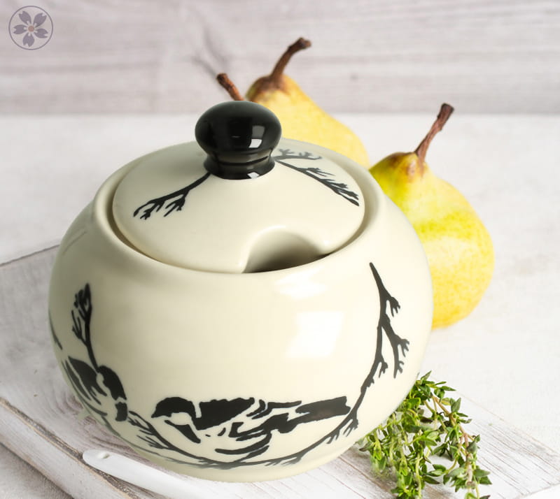 The sugar bowl of capacity 0,3l. The cover of every sugar bowl has got a hole for a spoon. The sugar bowl is a great addition to your coffee set.