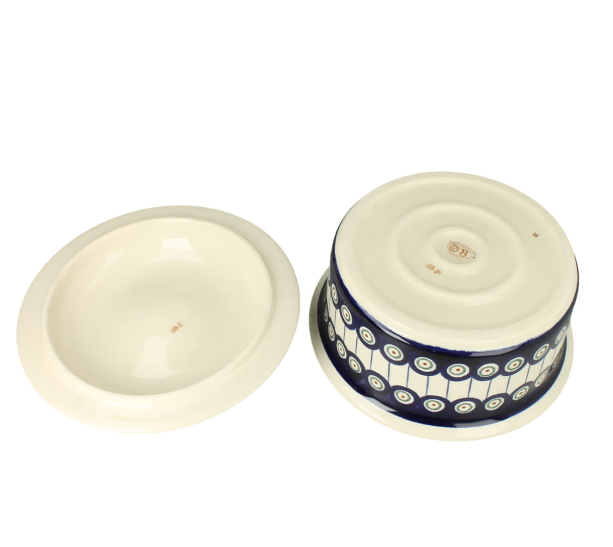 Maselnica na pół kostki masła. Produkt ręcznie formowany i dekorowany w Zakładach Ceramicznych Bolesławiec.