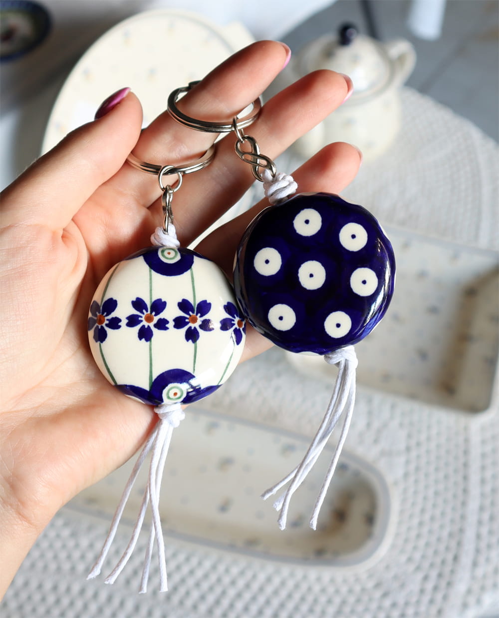 Koralik ceramiczny. Produkt ręcznie formowany i dekorowany w Zakładach Ceramicznych Bolesławiec.