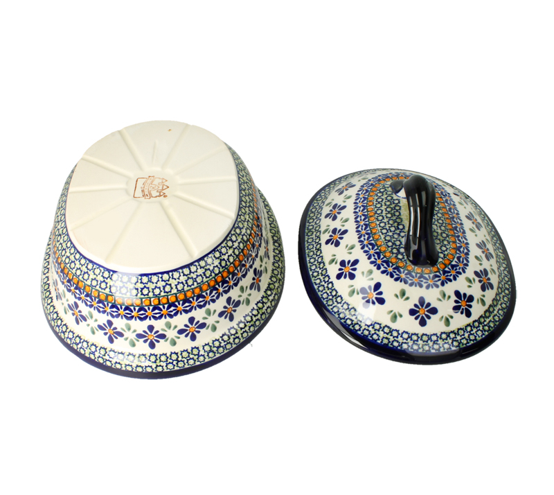 Maselnica z pokrywą, pomieści całą kostkę masła. Produkt ręcznie formowany i dekorowany w Zakładach Ceramicznych Bolesławiec.