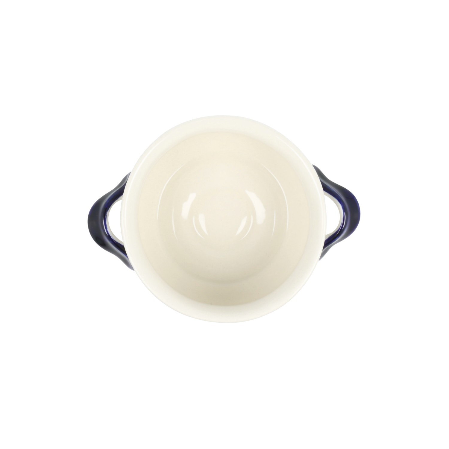 Cukiernica z uszami i otworem na łyżeczkę. Produkt ręcznie formowany i dekorowany w Zakładach Ceramicznych Bolesławiec.