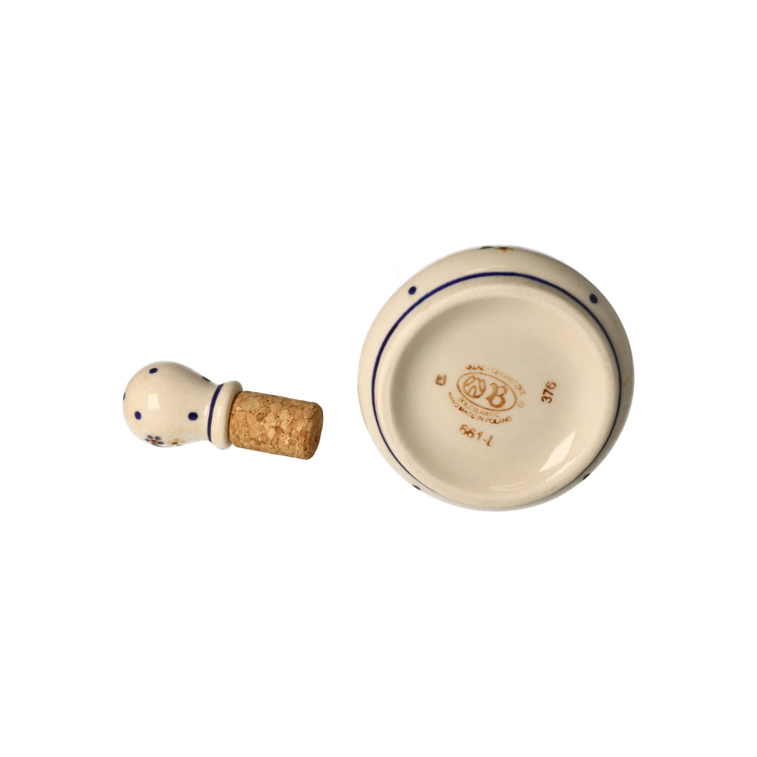 Korek do butelki występuje w dwóch wariantach: z dekoracją oraz cały kobaltowy. Do butelki dołączamy ten, który jest dostępny w momencie zamówienia.