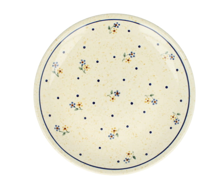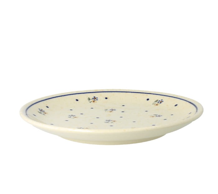Płaski talerz deserowy. Produkt ręcznie formowany i dekorowany w Zakładach Ceramicznych Bolesławiec.