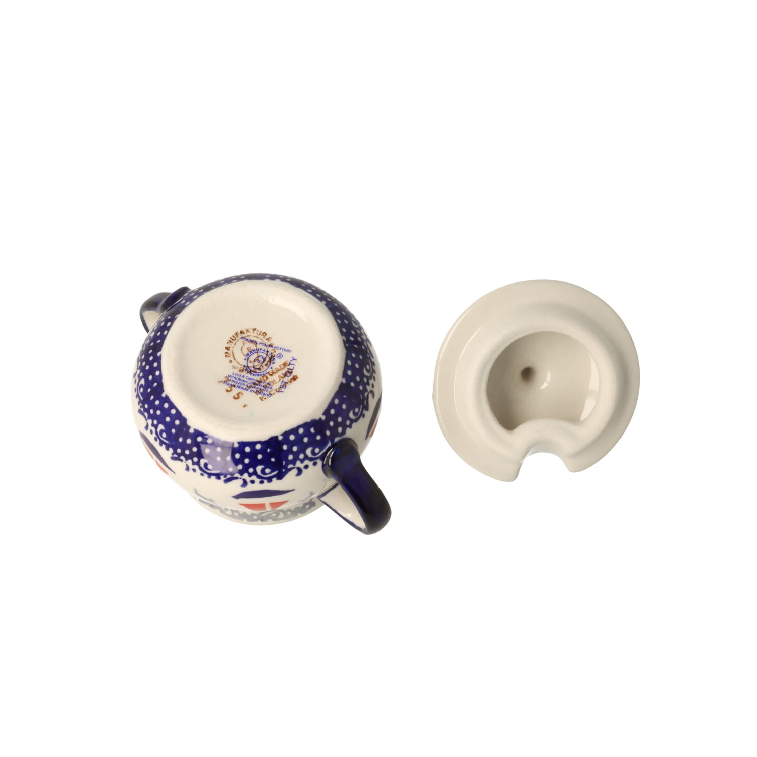 Produkt wykonany z bolesławieckiej glinki ceramicznej, ręcznie formowany i dekorowany przez artystę Manufaktury w Bolesławcu.