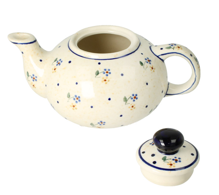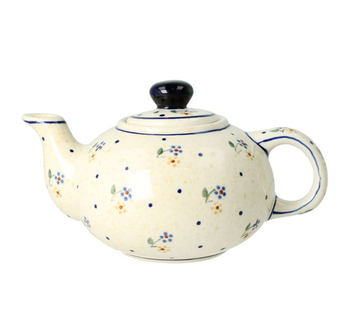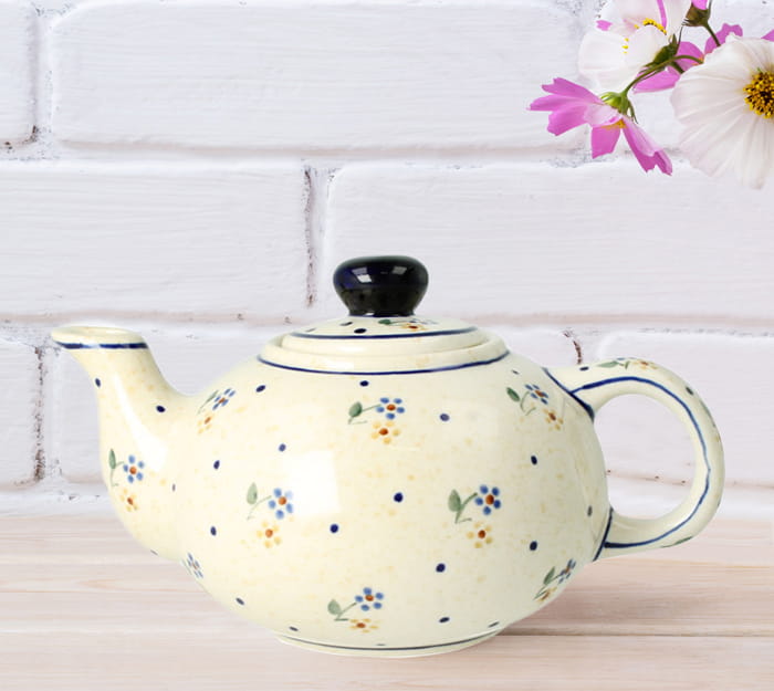 Mały czajniczek. Produkt ręcznie formowany i dekorowany w Zakładach Ceramicznych Bolesławiec.