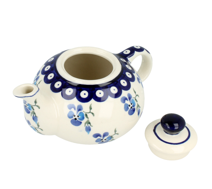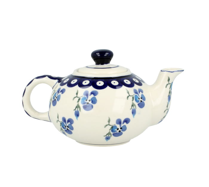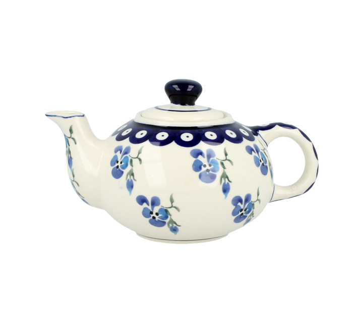 Mały czajniczek z możliwością zaparzania. Produkt ręcznie formowany i dekorowany w Zakładach Ceramicznych Bolesławiec.