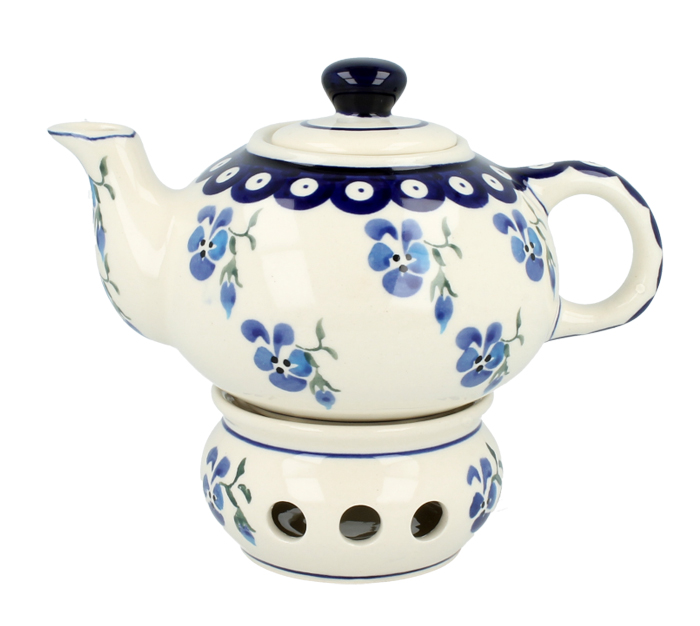 Czajnik z wbudowanym sitkiem i możliwością podgrzewania. Produkt ręcznie formowany i dekorowany w Zakładach Ceramicznych Bolesławiec.