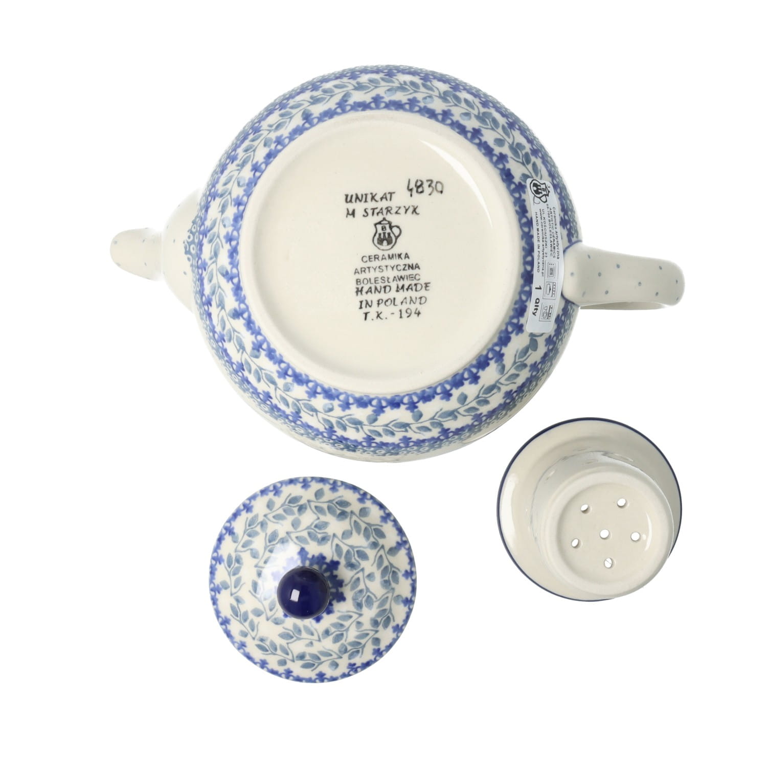 Czajnik Ceramika Artystyczna Bolesławiec do herbaty Sitko V 0,9 L E22 dekU4830