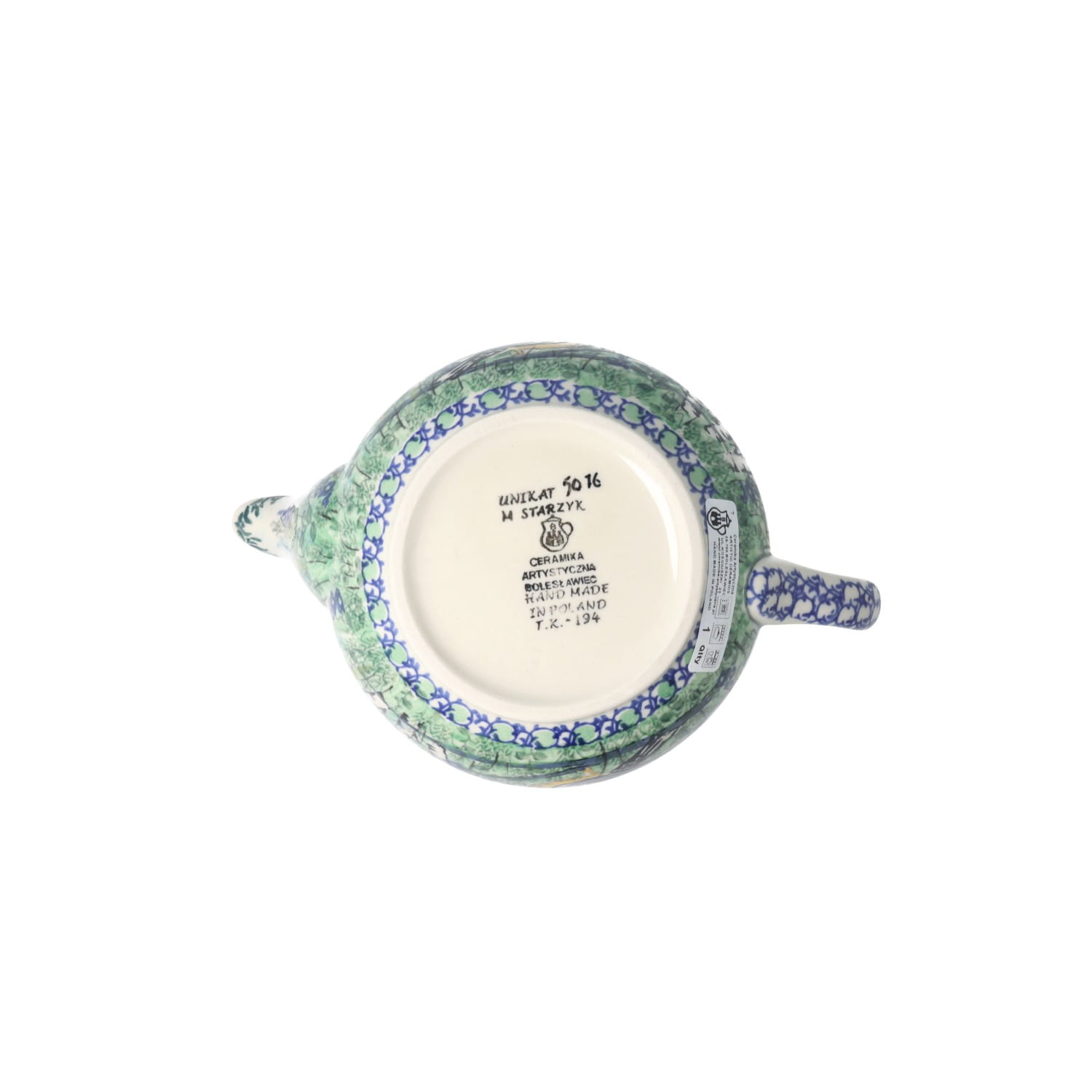 Produkt wykonany z glinki ceramicznej, ręcznie formowany i dekorowany w Ceramice Artystycznej S.R.A. w Bolesławcu.