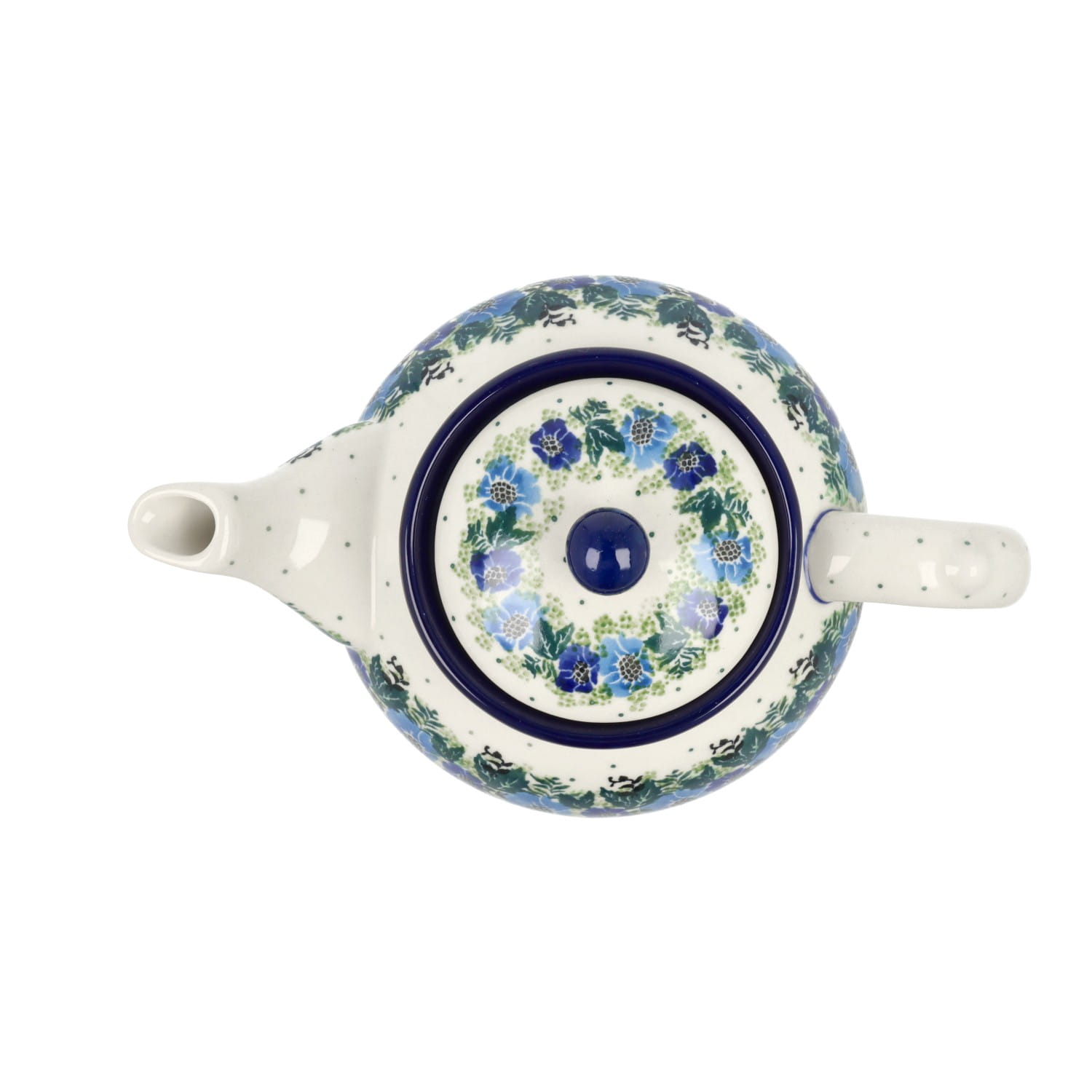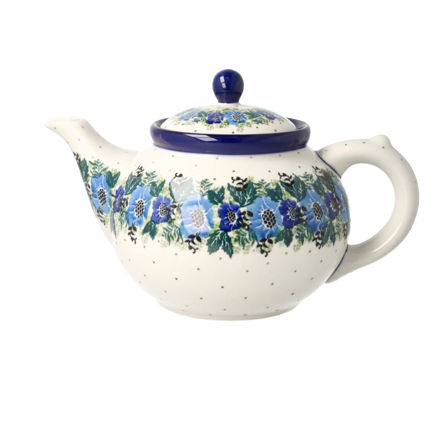Czajnik z wbudowanym sitkiem i możliwością podgrzewania. Produkt ręcznie formowany i dekorowany w Zakładach Ceramicznych Bolesławiec.