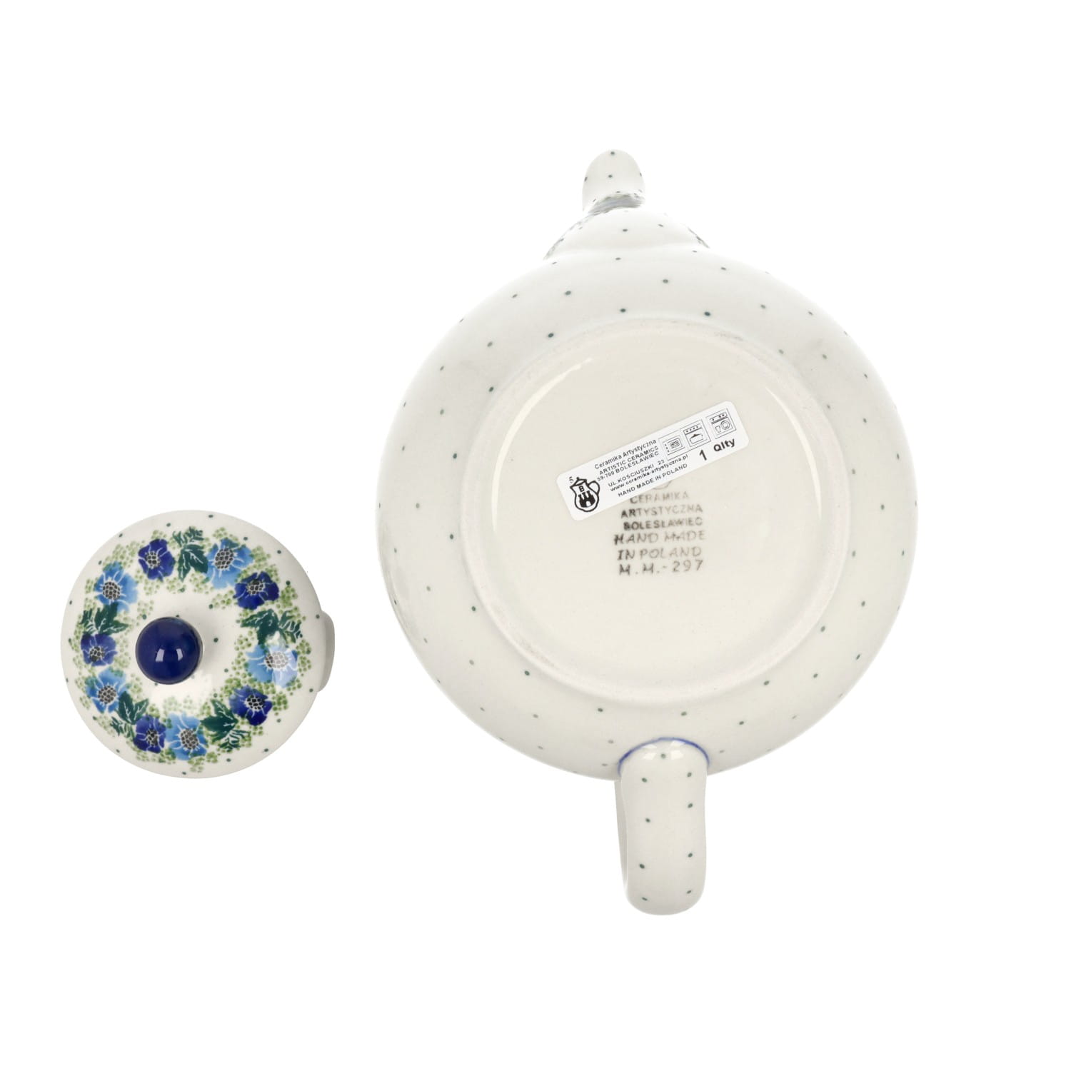 Czajnik w klasycznym kształcie. Produkt ręcznie formowany i dekorowany w Ceramice Artystycznej S.R.A. Bolesławiec.
