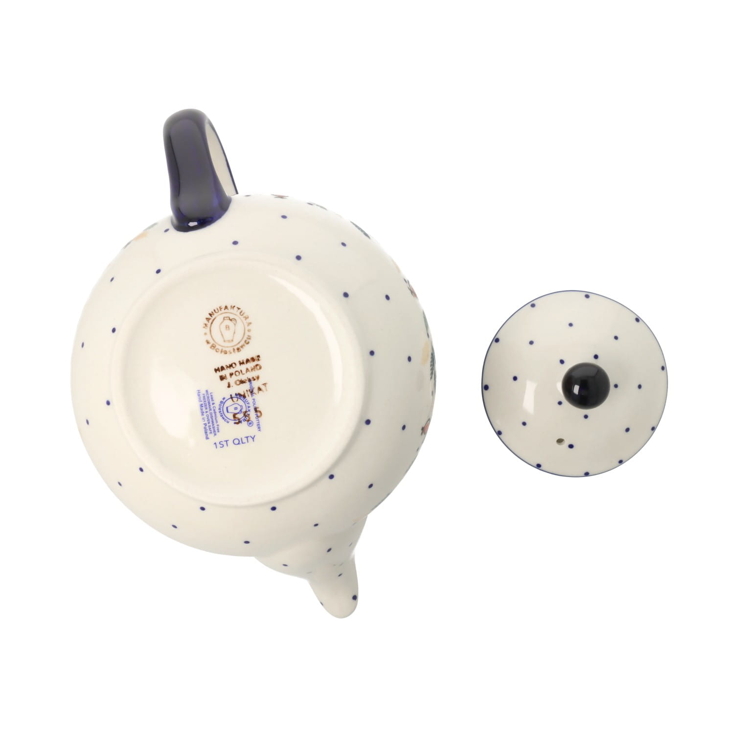 Produkt wykonany z glinki ceramicznej, ręcznie formowany i dekorowany w Manufakturze w Bolesławcu.