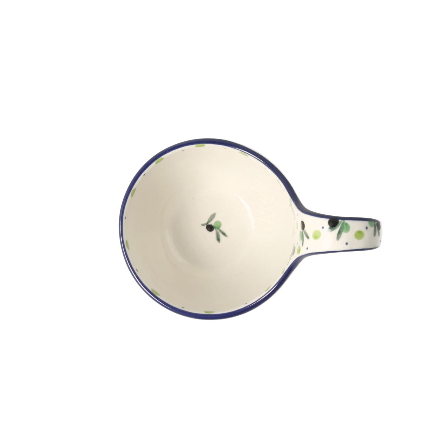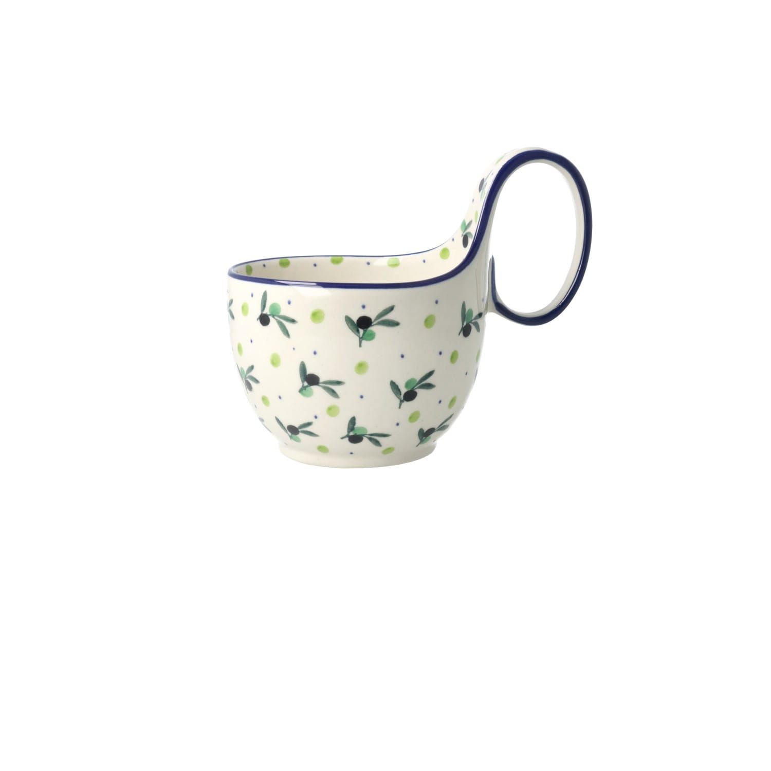 Mały kubeczek z uchem. Produkt ręcznie formowany i dekorowany w Ceramice Artystycznej S.R.A. Bolesławiec.