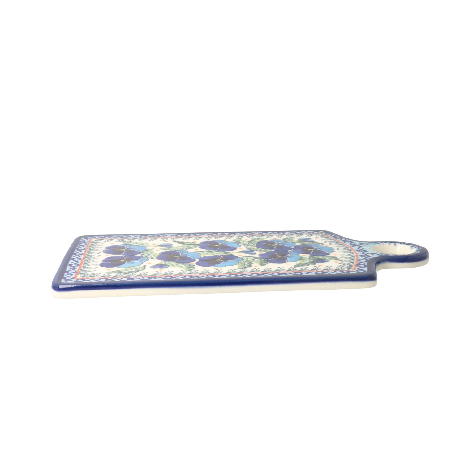 Podłużna taca z uchwytami i podniesionym brzegiem. Produkt ręcznie formowany i dekorowany w Zakładach Ceramicznych Bolesławiec.
