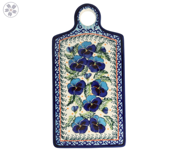 Podłużna taca z podniesionym brzegiem. Produkt ręcznie formowany i dekorowany w Zakładach Ceramicznych Bolesławiec.