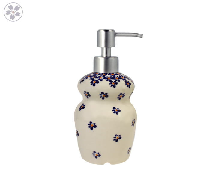 Ceramiczny dozownik na mydło. Może funkcjonować jako przedmiot codziennego użytku np. jako dozownik na płyn do mycia naczyń lub krem do rąk.