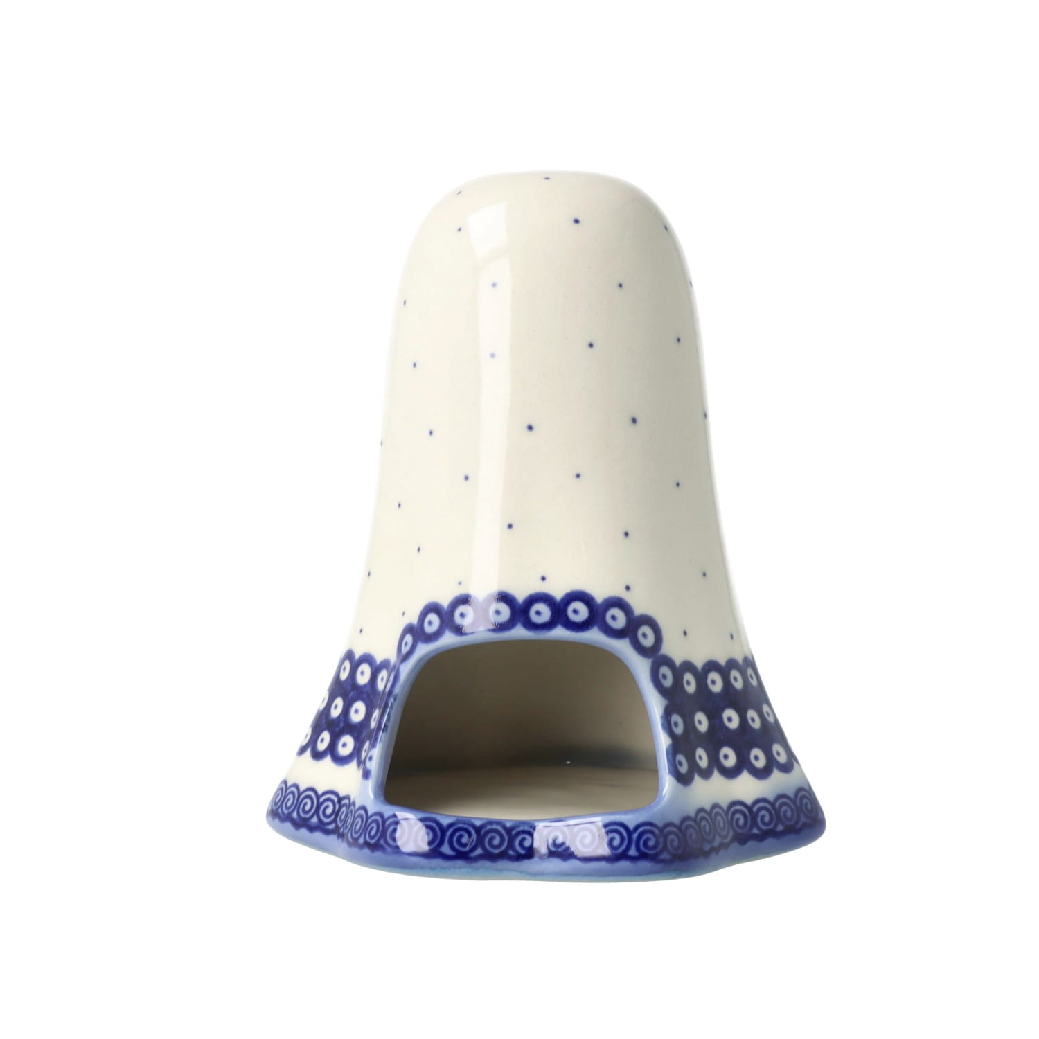 Figurka-lampion w kształcie domku. Produkt ręcznie formowany i dekorowany w Manufakturze Galia Bolesławiec.