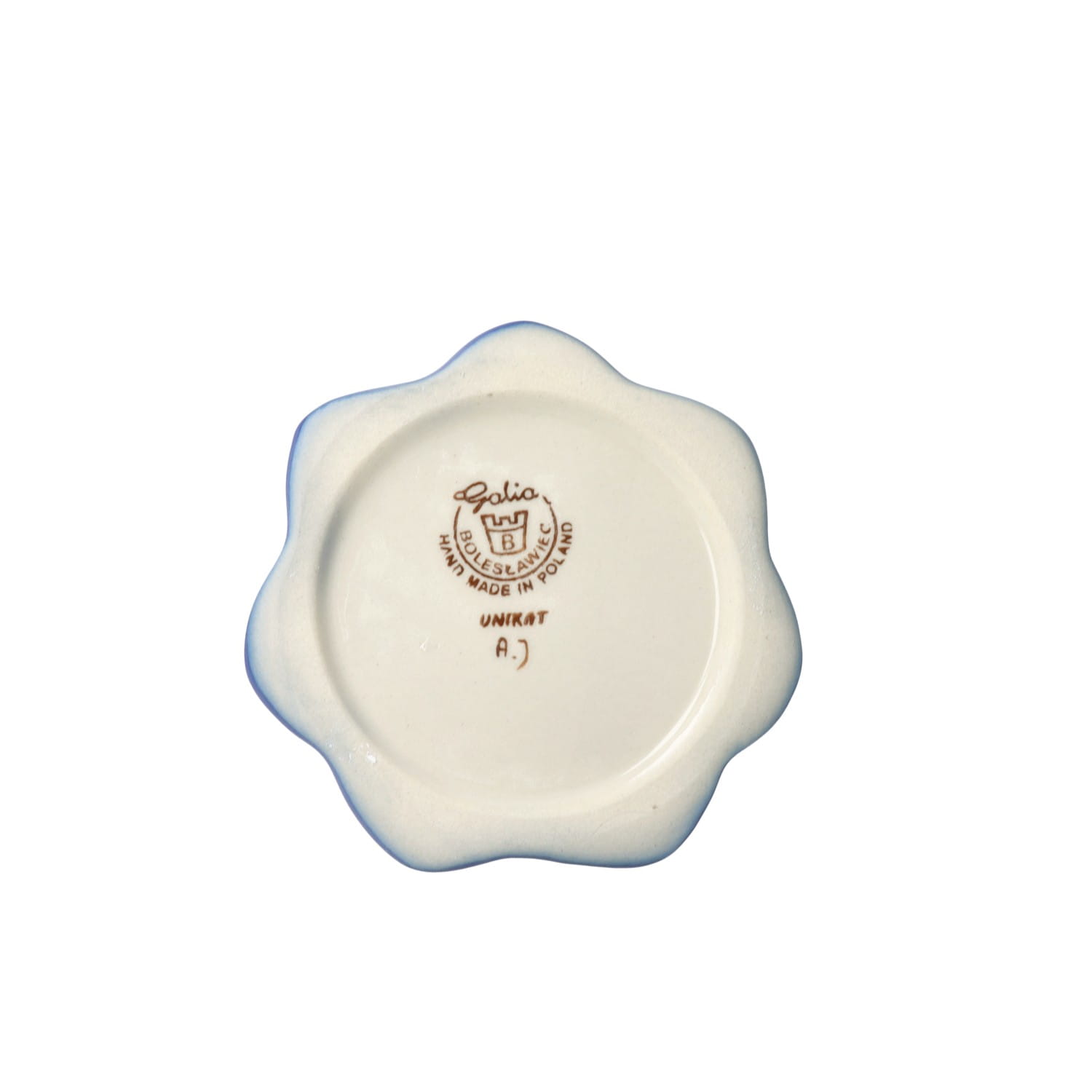 Mały ceramiczny kieliszek. Produkt ręcznie formowany i dekorowany w Manufakturze Galia Bolesławiec.