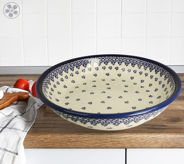 Duża, uniwersalna miska kuchenna. Produkt ręcznie formowany i dekorowany w Zakładach Ceramicznych Bolesławiec.