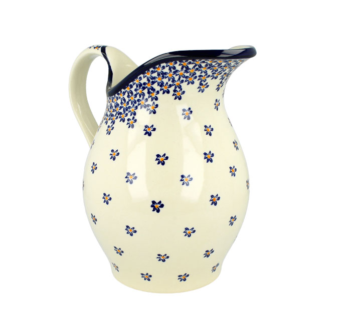 Duży, pękaty dzban z uchwytem. Produkt ręcznie formowany i dekorowany w Zakładach Ceramicznych Bolesławiec.
