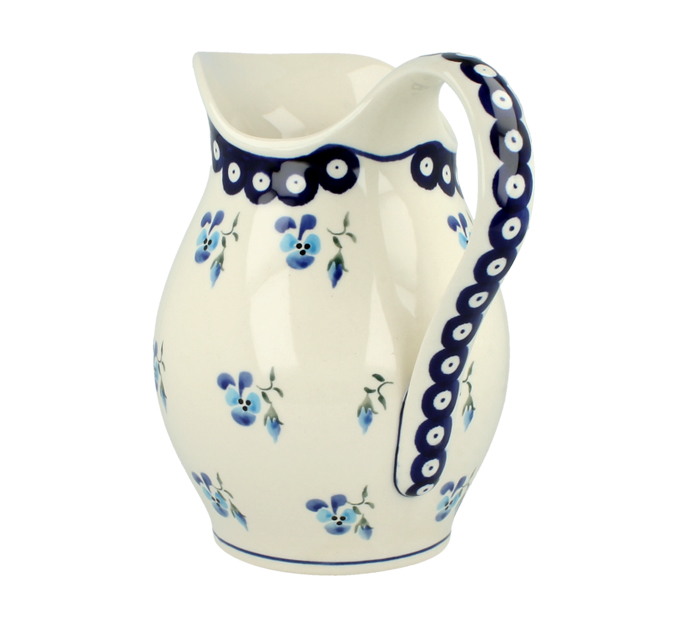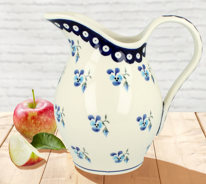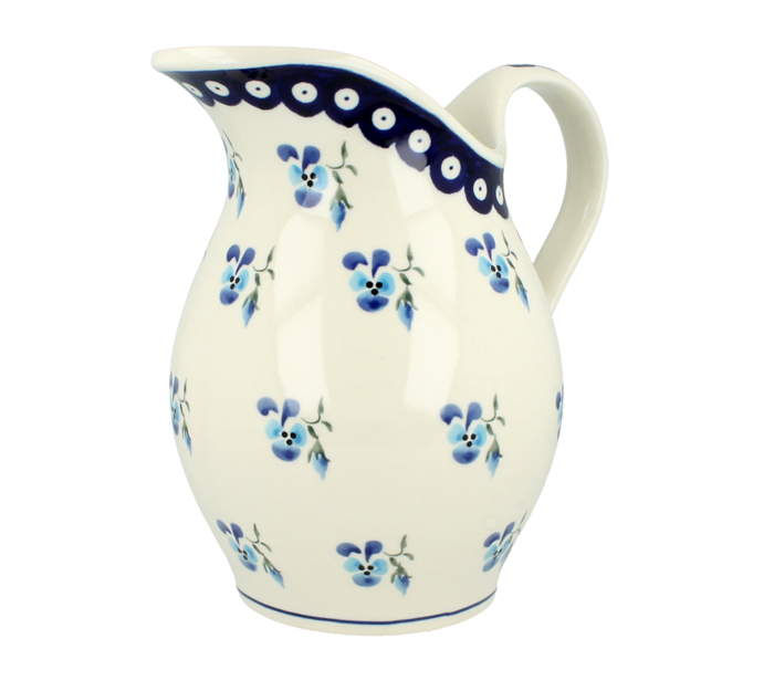 Duży, pękaty dzbanek z uchwytem. Produkt ręcznie formowany i dekorowany w Zakładach Ceramicznych Bolesławiec.