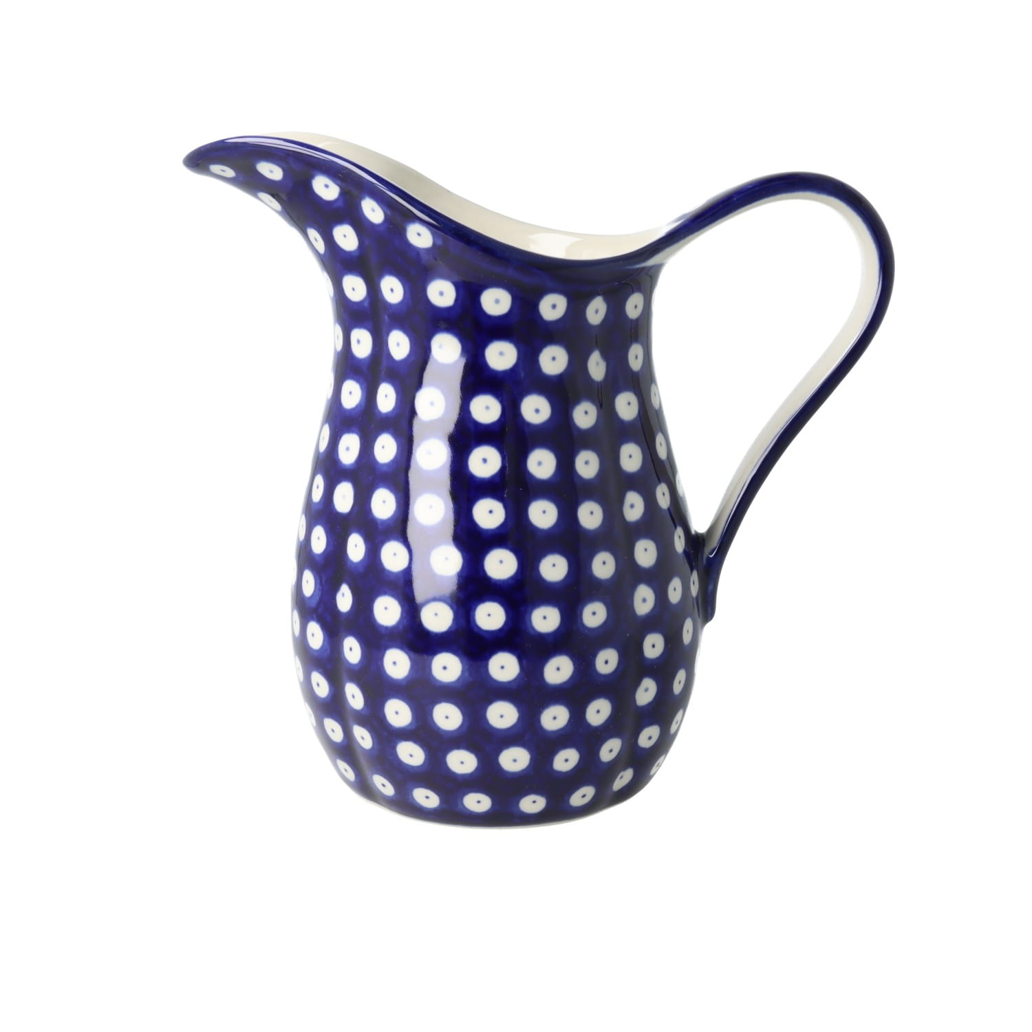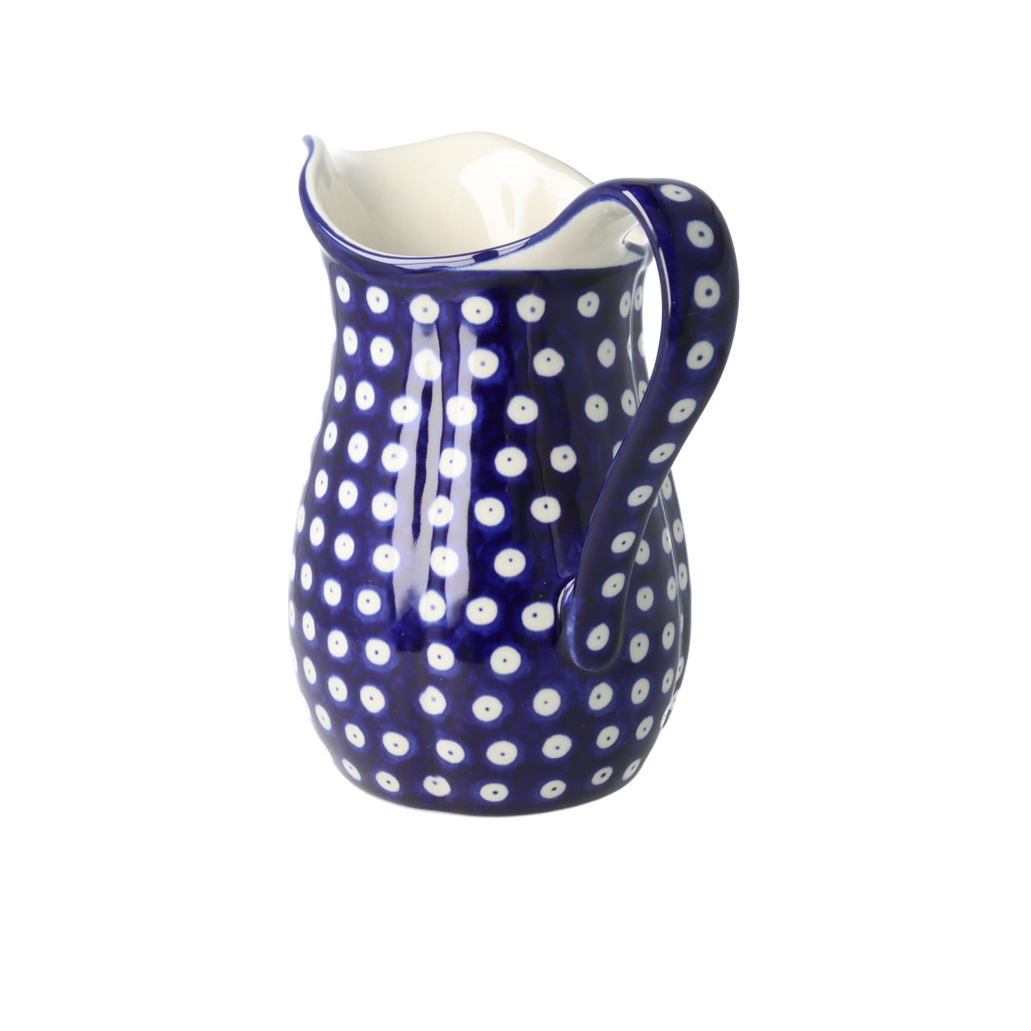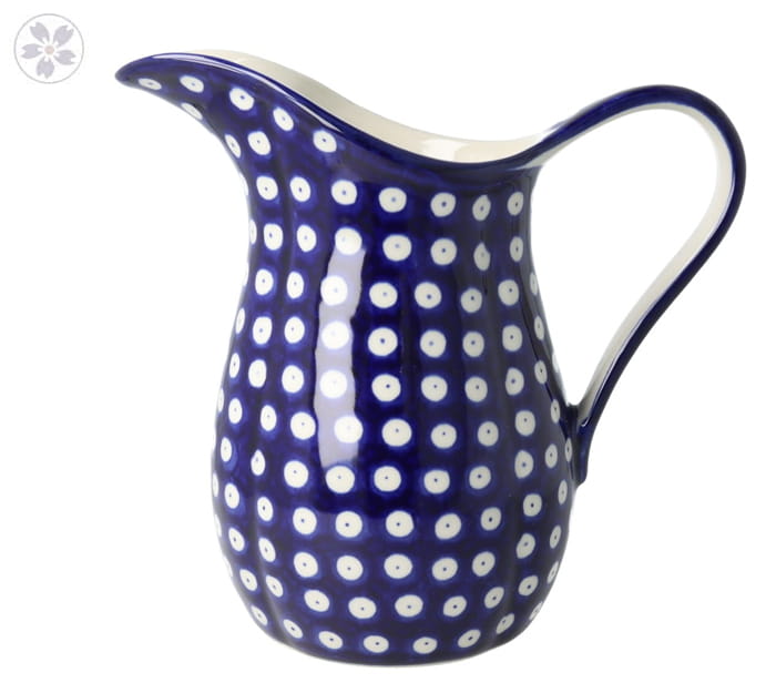 Duży, pękaty dzbanek z uchwytem. Produkt ręcznie formowany i dekorowany w Ceramice Artystycznej S.R.A. Bolesławiec.