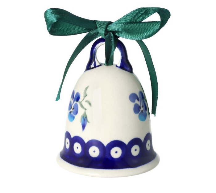 Dzwonek ze wstążką. Produkt ręcznie formowany i dekorowany w Zakładach Ceramicznych Bolesławiec.
