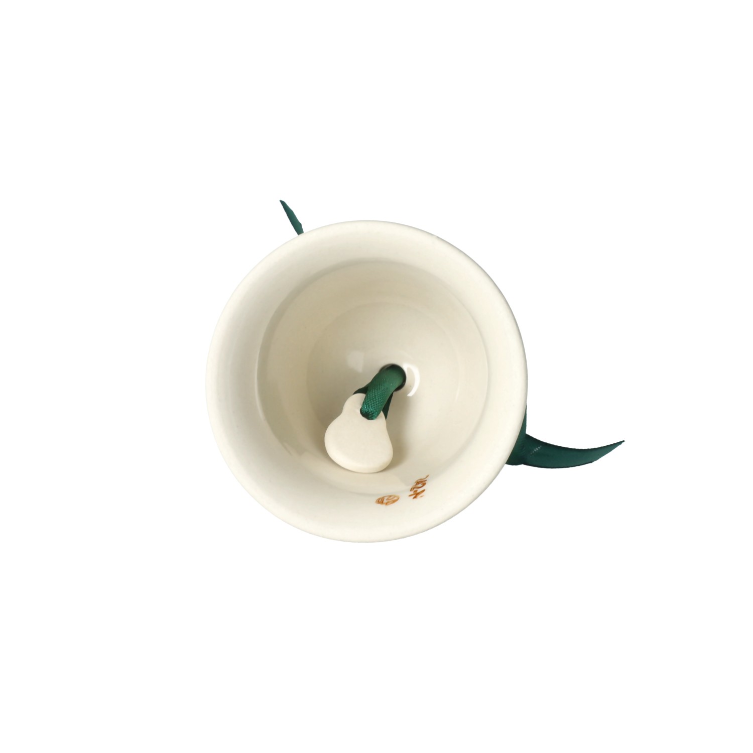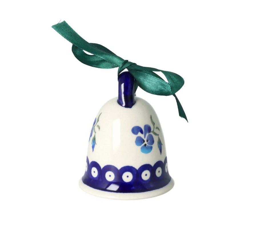 Mały dzwonek ze wstążką. Produkt ręcznie formowany i dekorowany w Zakładach Ceramicznych Bolesławiec.