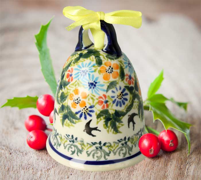 Bombka choinkowa z elementem do zawieszenia. Produkt ręcznie formowany i dekorowany w Zakładach Ceramicznych Bolesławiec.