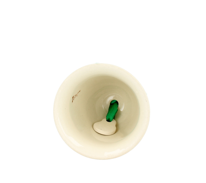 Serce dzwonka jest przywiązane za barwną wstążką. Dzięki uchwytowi dzwonek może być powieszony na choince lub na stroiku.