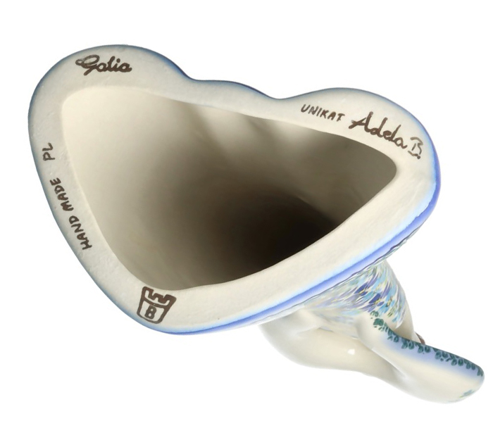 Produkt wykonany z glinki ceramicznej, ręcznie formowany i dekorowany w Manufakturze Galia w Bolesławcu.