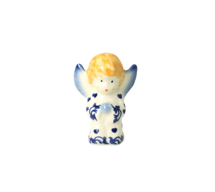 Mała figurka aniołek. Produkt ręcznie formowany i dekorowany w Manufakturze Galia Bolesławiec.