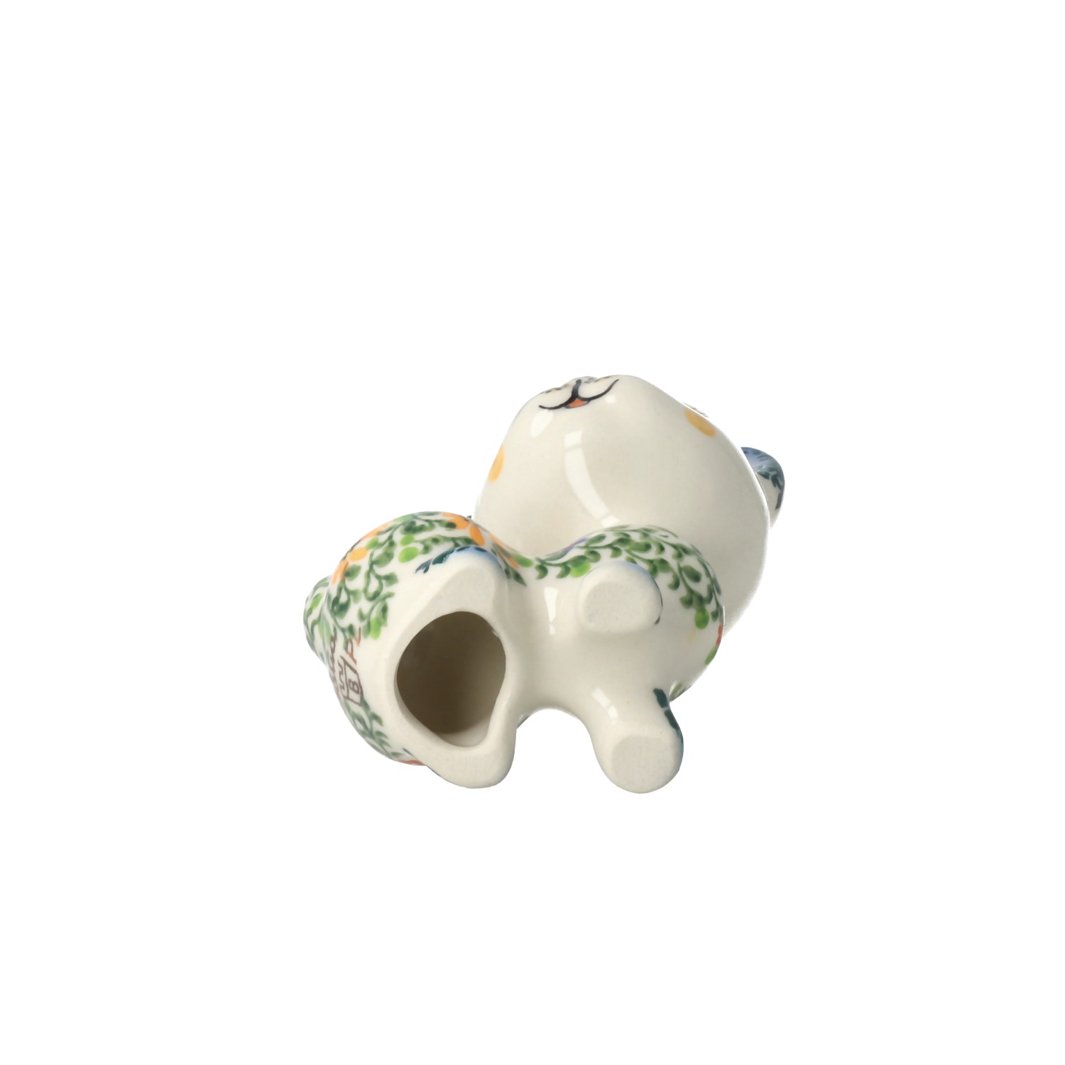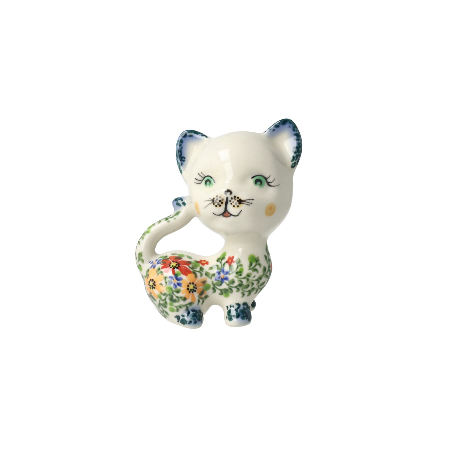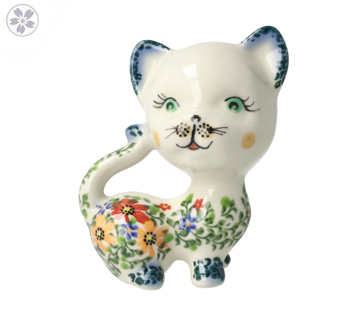 Figurka w kształcie kota. Produkt ręcznie formowany i dekorowany w Manufakturze Galia Bolesławiec.